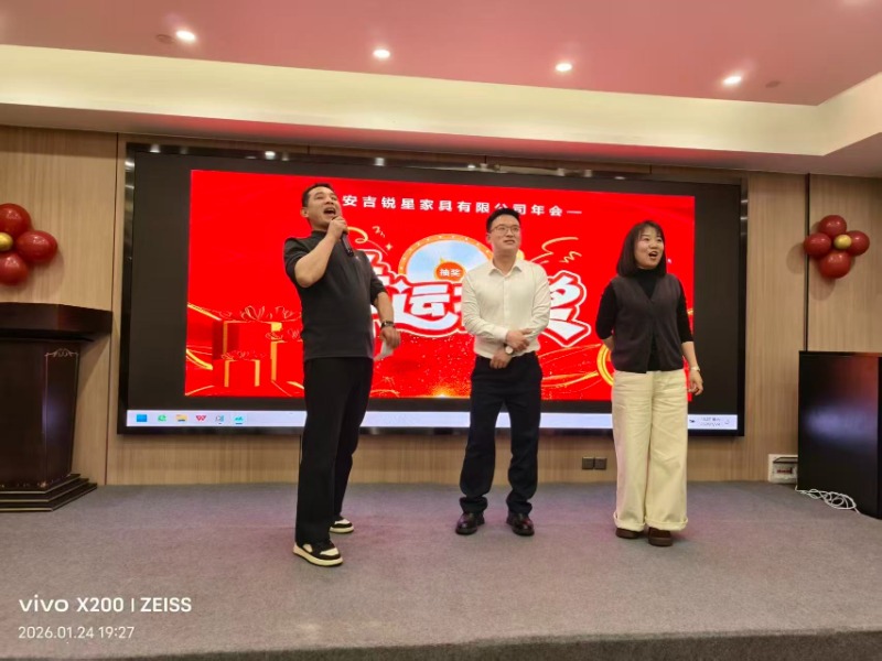24. januára 2026 Nábytok Anji Ruixing usporiadala svoje výročné stretnutie v prestížnom hoteli Anji Borui, kde sa stretli vedúci pracovníci a manažment spoločnosti, aby oslávili úspechy za minulý rok a prediskutovali budúce ciele. Podujatie bolo plné nadšenia, kamarátstva a uznania za vynikajúce príspevky.